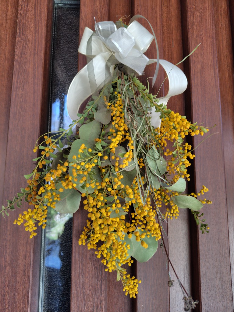 三束を購入して、母屋と阿Qにスワッグを手作りしました☺束ねただ