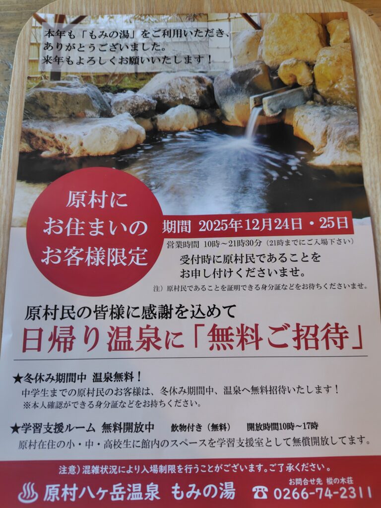 樅の木荘、もみの湯から原村民限定のクリスマスプレゼント🎁