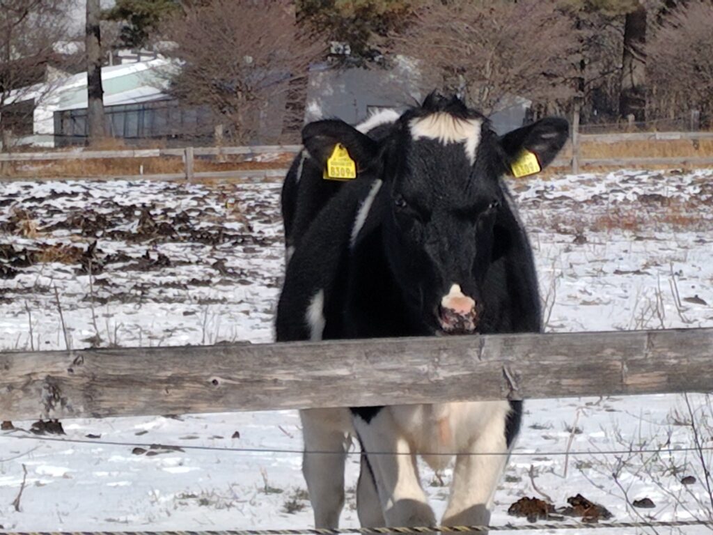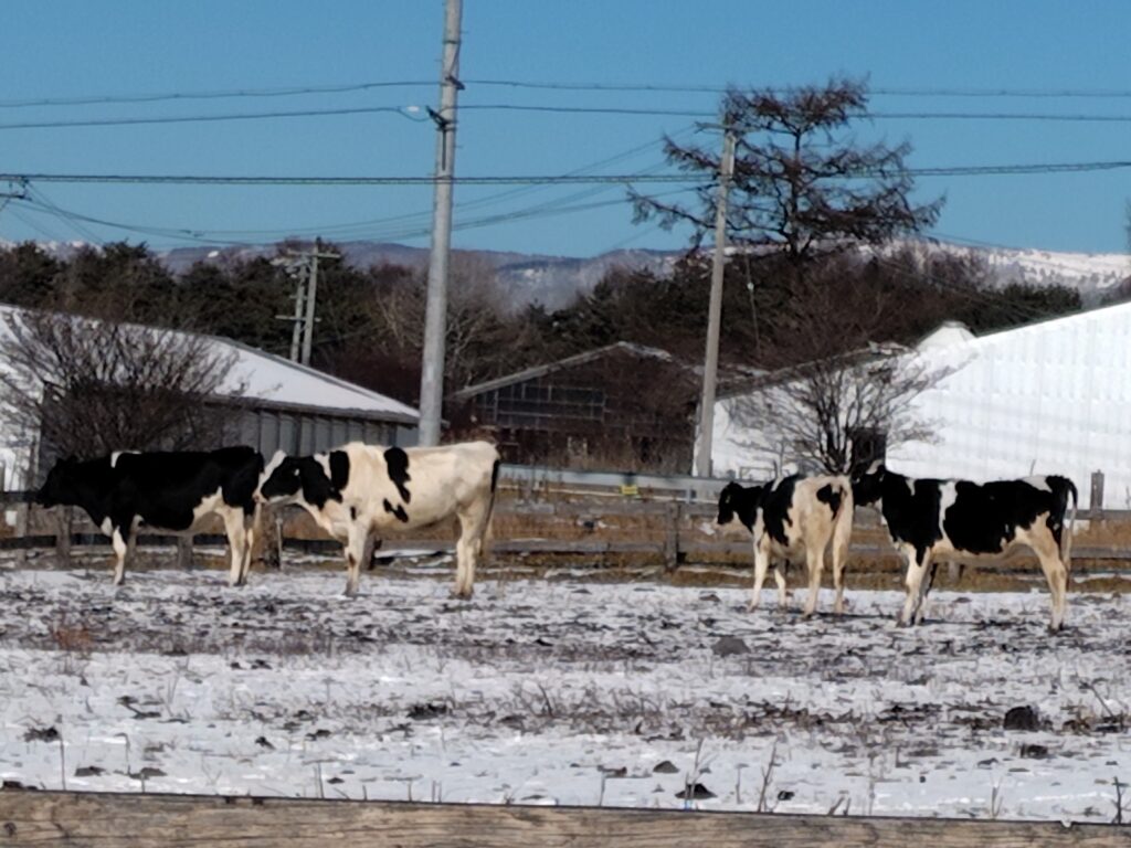 牛さんたち寒そう、動かない