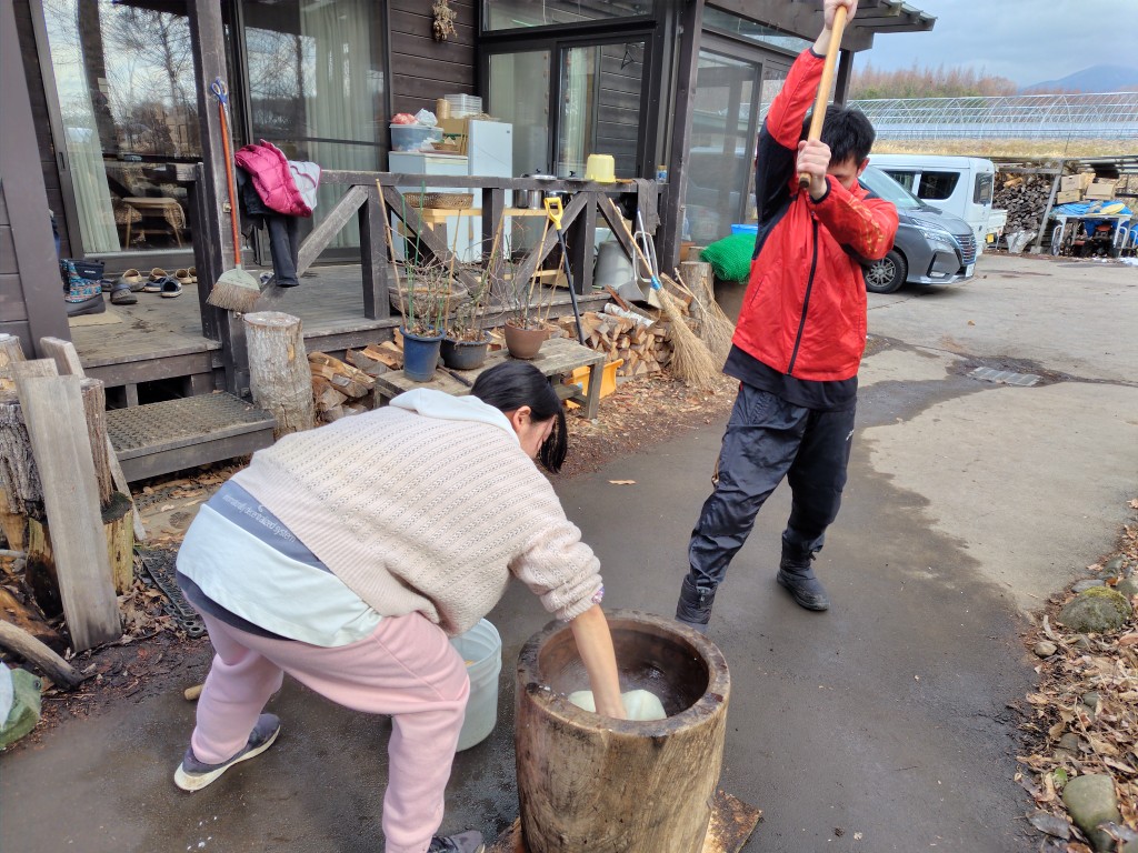 食材は自家製!家族が力を合わせての餅つき、昔ながらの餅つきを伝承し