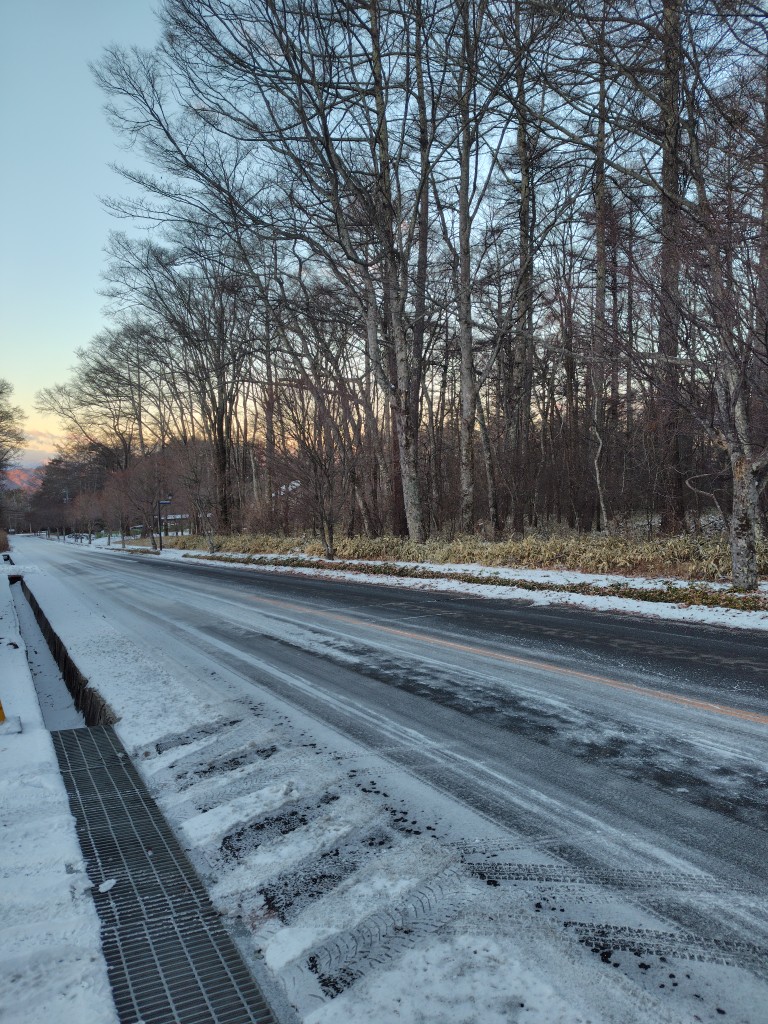↓↓↓こうなってしまったら、車が温まるまで約15分、路面も凍結しています。