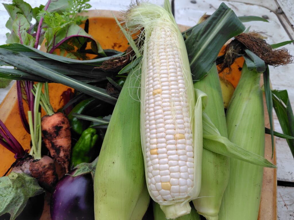 阿Q畑では白色トウモロコシが食べごろになりましたよ!