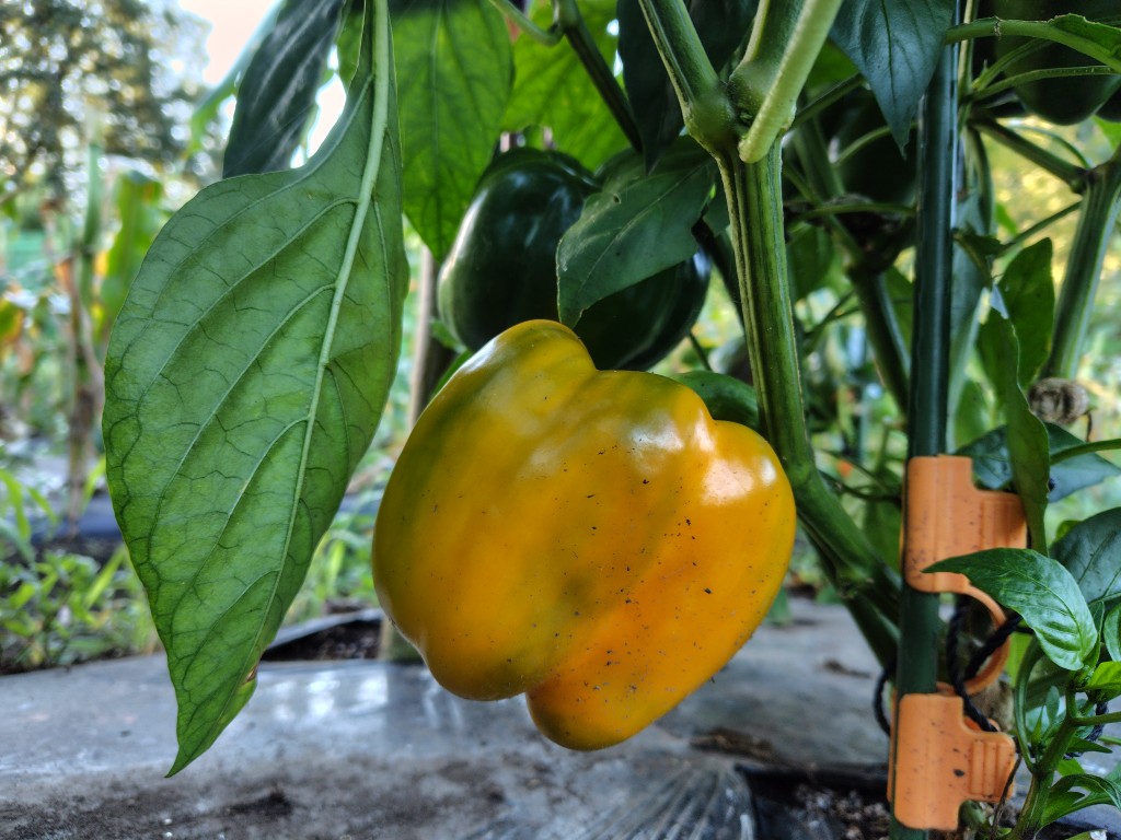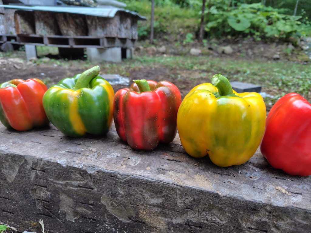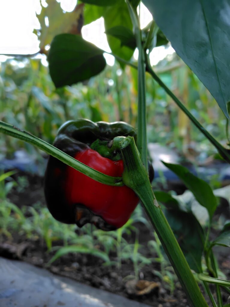 やっと、やっとパプリカが徐々に、緑色から赤・黄色づきはじめましたよ!